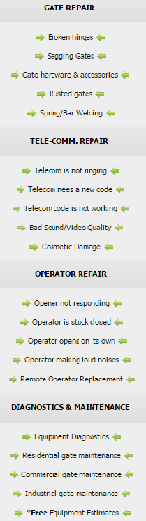 Garland Electric Gate Repair electric gate repair service is available to residences and businesses throughout the area. When you notice that your electric gate won’t open, close or is acting funny when trying to operate it, then our experts can come to your place to find out the problem. Our electric gate repair service is affordable and used by property owners all over .